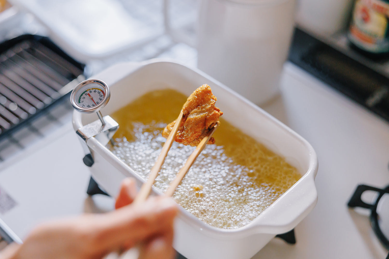 FUJIHORO(富士ホーロー)IH対応 角型天ぷら鍋 フライヤーバスケット付き ホワイト