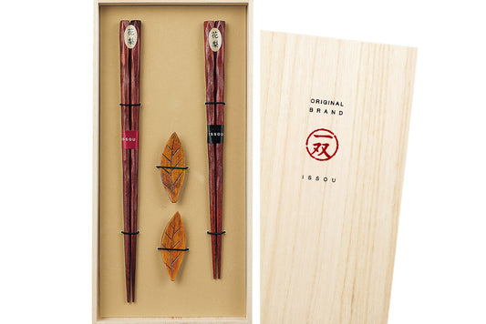 若狭塗 一双/ギフトセット 桐箱 花梨&箸置ゆずりは 2P -かりん&はしおきゆずりは-