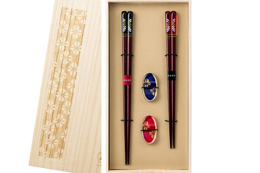 若狭塗 一双/ギフトセット 百福桐箱 箸置付 夫婦箸 桜彩-おうさい-