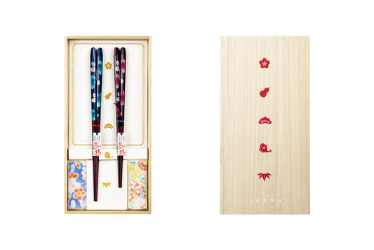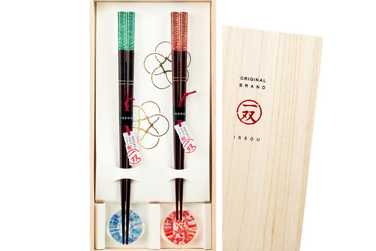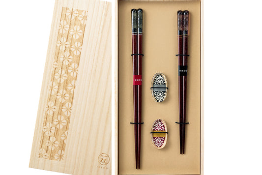 若狭塗 一双/ギフトセット 桐箱 祝波&箸置ひいらぎ 2P -いわいなみ&はしおきひいらぎ-