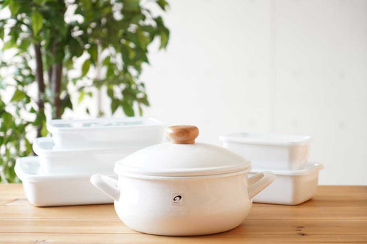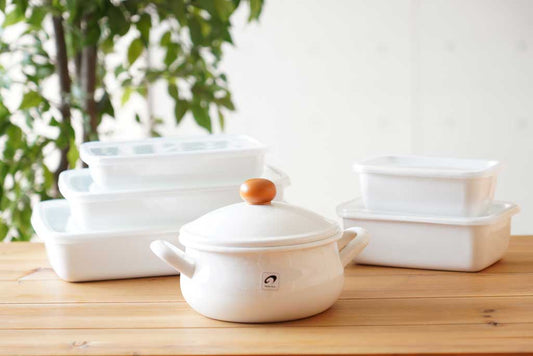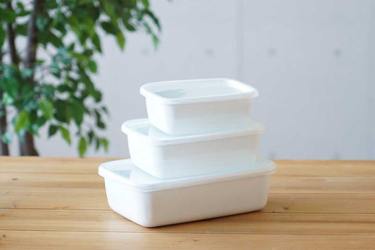 野田琺瑯 White Series レクタングル 《 浅型M 》 シール蓋付 保存容器 日本製