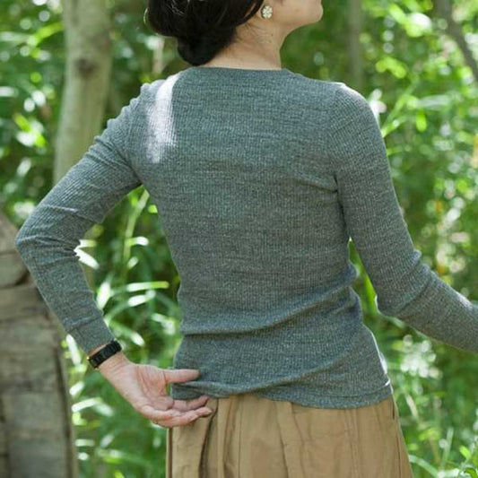 天衣無縫 オーガニックコットンとヤクでつくった クルーネックプルオーバー《 M~L 》グレー/ブラウン 日本製