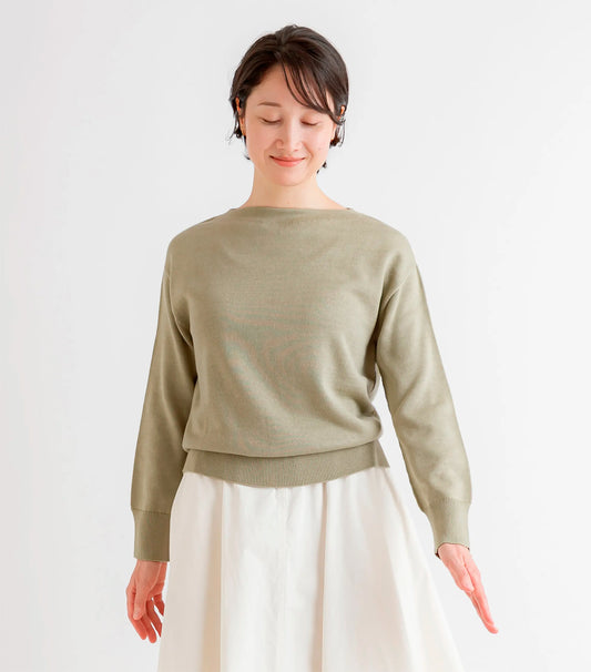 天衣無縫 アルティメイトピマ ボートネックプルオーバー《 M~L 》生成り/グリーン 日本製