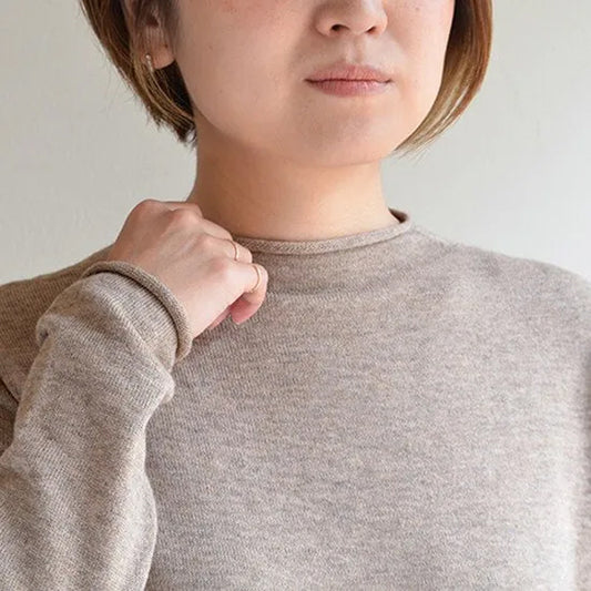 • 天衣無縫 オーガニックコットンとヤクでつくった ロールネックプルオーバー《 M~L 》グレー/ブラウン 日本製