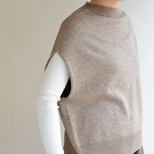 • 天衣無縫 オーガニックコットンとヤクでつくった モックネックベスト《 M~L 》グレー/ブラウン 日本製