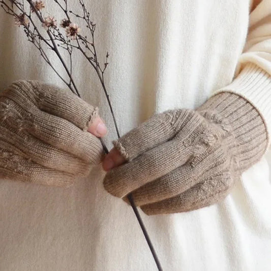 天衣無縫 オーガニックコットンとヤクでつくった 縄編み手袋 《 フリーサイズ 》グレー/ブラウン 日本製