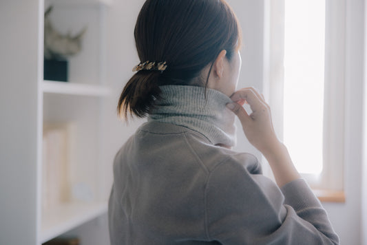 天衣無縫 オーガニックコットンとヤクでつくった ロールネックプルオーバー《 M~L 》グレー/ブラウン 日本製