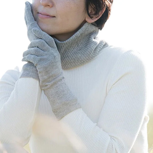 天衣無縫 オーガニックコットンとヤクでつくった 手袋《 フリーサイズ 》グレー/ブラウン 日本製