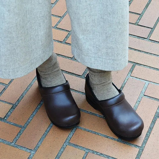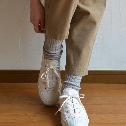 天衣無縫 オーガニックコットンとヤクでつくった ゴムなし ハイソックス《 Mサイズ 》グレー/ブラウン 日本製