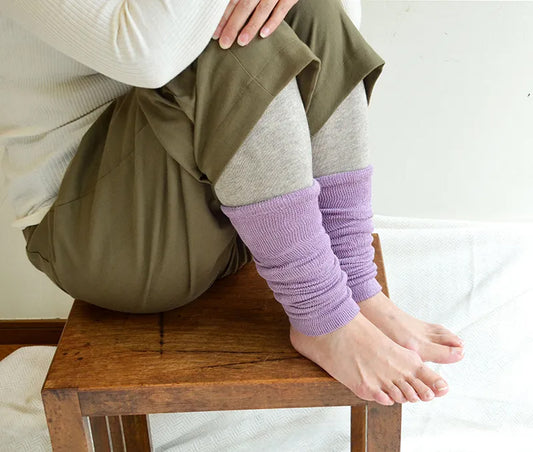 天衣無縫 オーガニックコットンとヤクでつくった 鹿の子編み レッグウォーマー《 フリーサイズ 》グレー/ブラウン 日本製