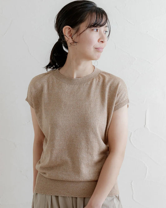 天衣無縫 自然のいろ 綿麻フレンチスリーブ《 M~L 》生成り/ブラウン 日本製