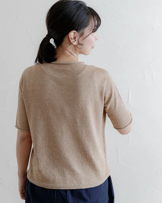 天衣無縫 自然のいろ 綿麻5分袖プルオーバー《 M~L 》生成り/ブラウン 日本製