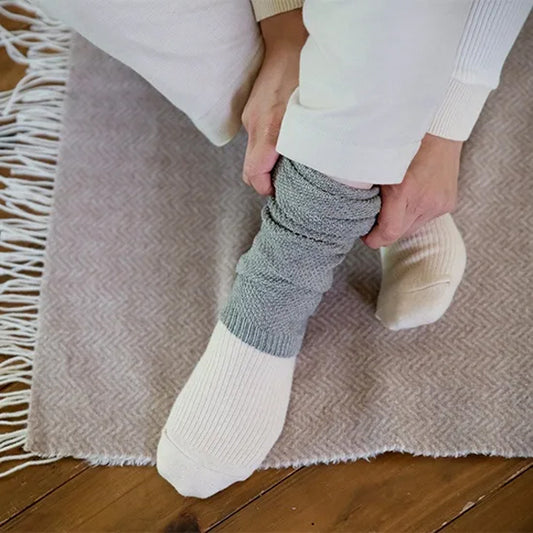 天衣無縫 オーガニックコットンとヤクでつくった 裏起毛筒型ソックス《 フリーサイズ 》グレー/ブラウン 日本製