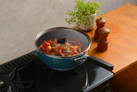 rinto IH対応 ガラス蓋付 外面ホーロー マルチパン 24cm ターコイズ <ラッピング対象外>