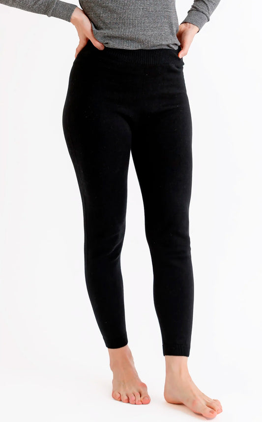 天衣無縫 スーピマコットン 縫い目のないロングニットパンツ ベージュ/ブラック 日本製