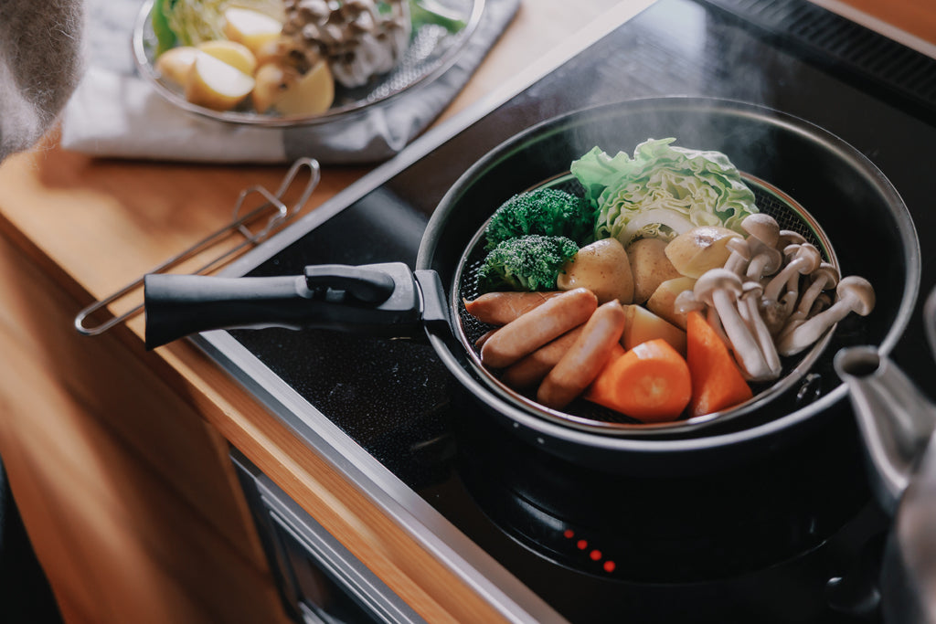 お手持ちのフライパンで、蒸し料理もお楽しみいただけます。