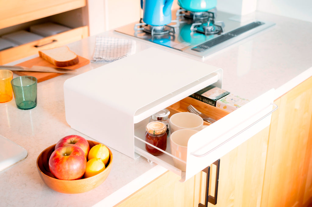 別売りのブレッドドロワーとカウンタードロワーをセットでお使いいただくこともおすすめです。散らかりがちなキッチンをすっきり見せることができます。