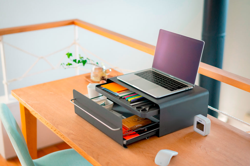 使用頻度の高いステーショナリー類や、A4書類・封筒などをまとめて収納することができます。