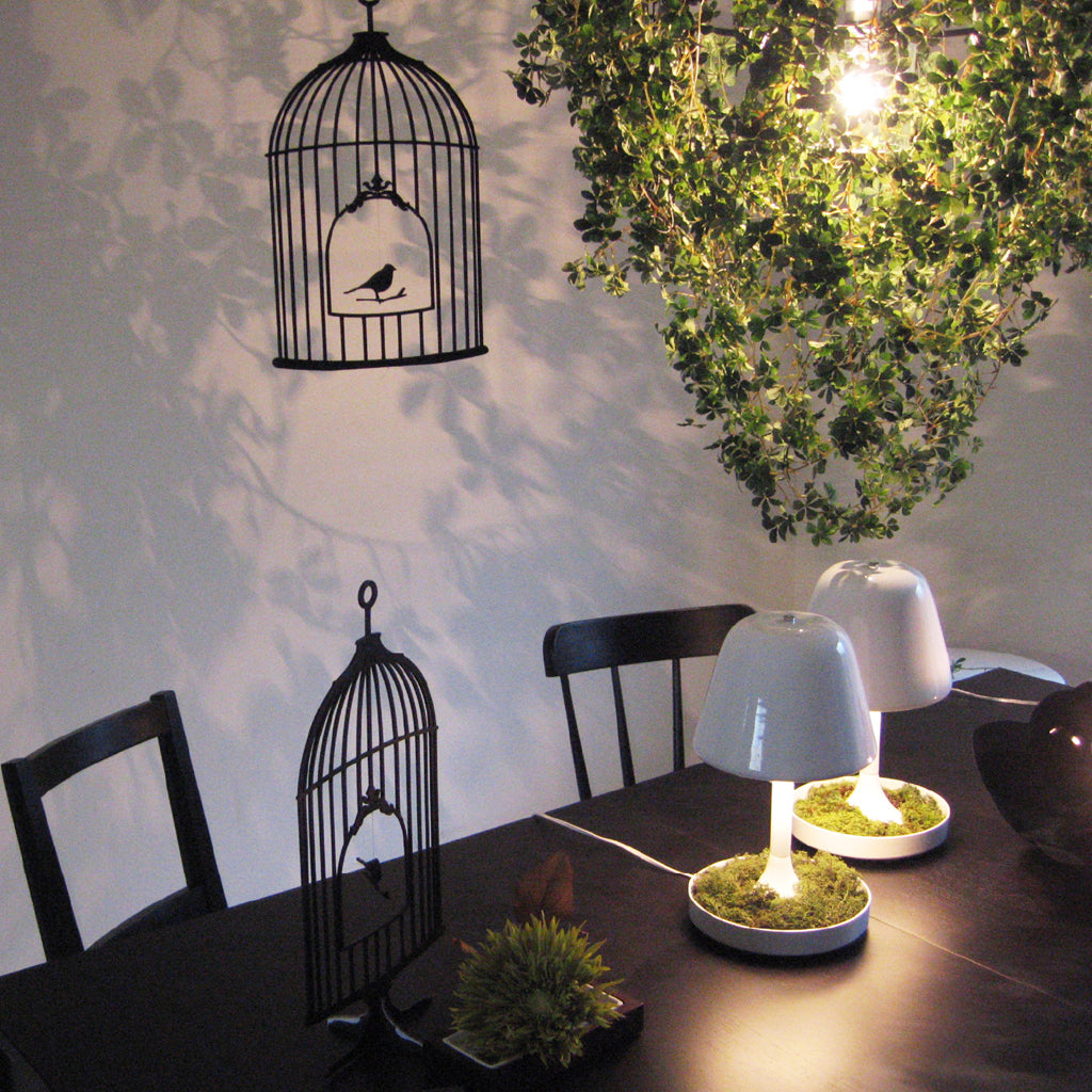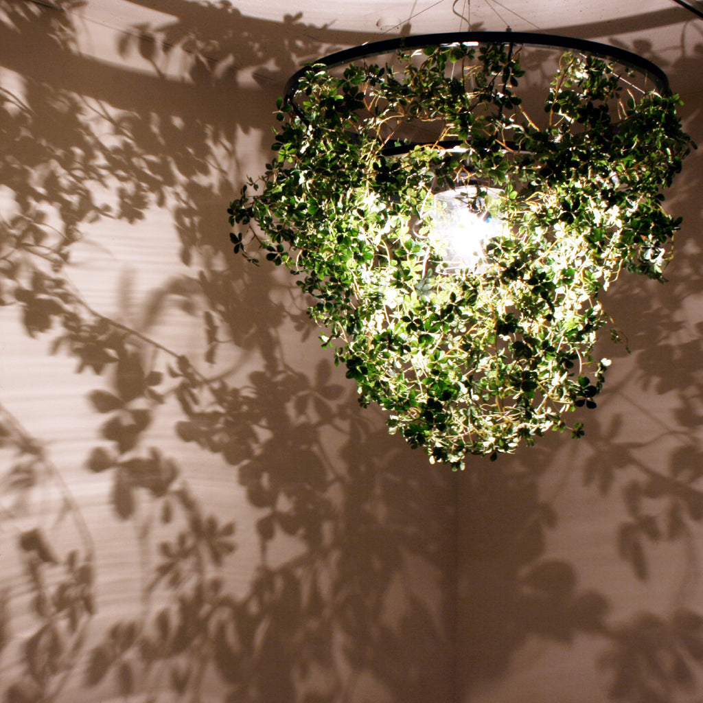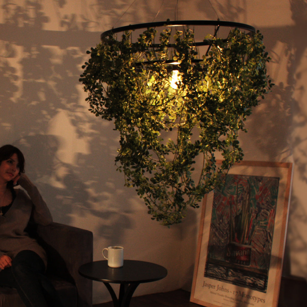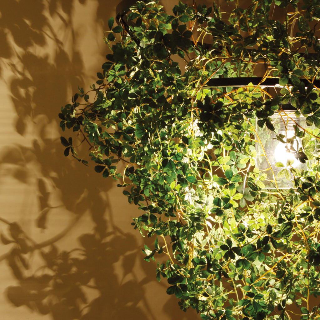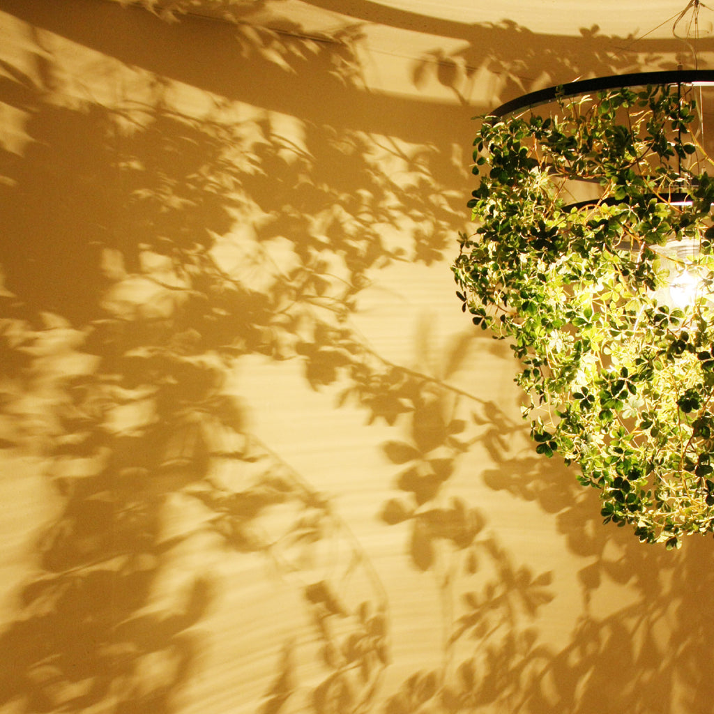 ディクラッセは照明器具のカタチだけでなく、 それが生み出す光と影をもデザインしています。 点灯すると葉の隙間から木漏れ陽のような光がこぼれ 壁には葉っぱの影が映し出されます。葉っぱの色である緑は、 目を休ませ気持ちを落ち着かせてくれる、心身の調和を導く色です。