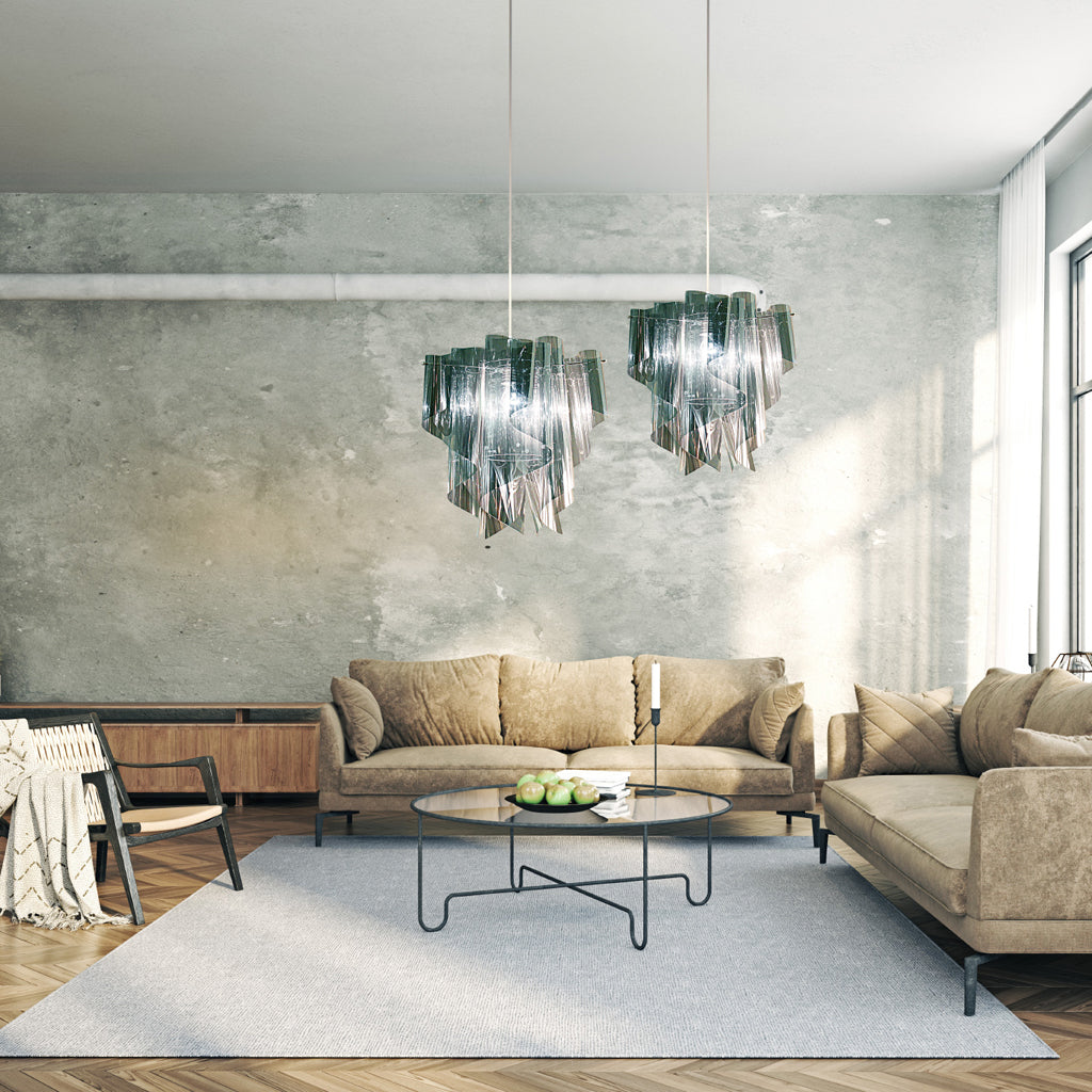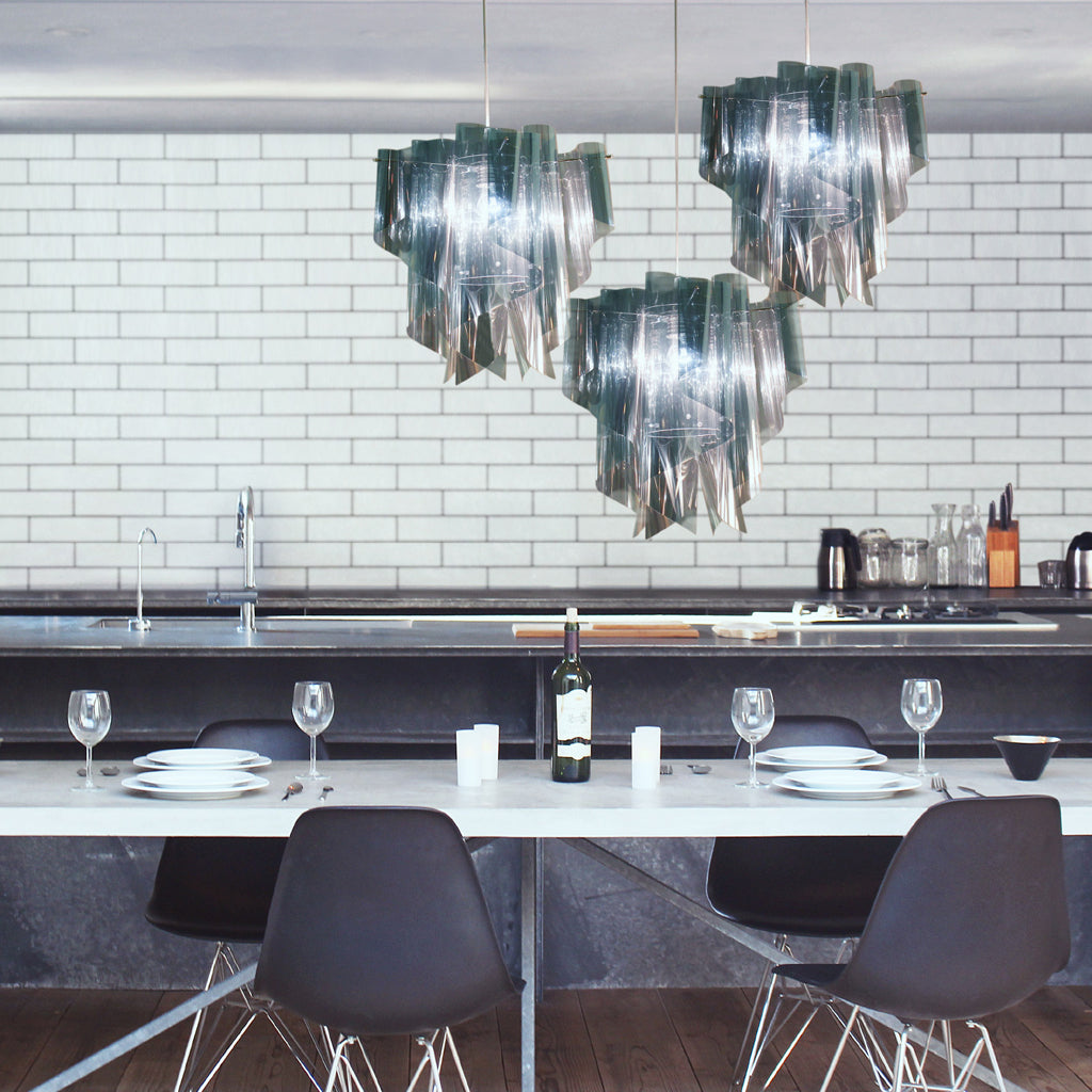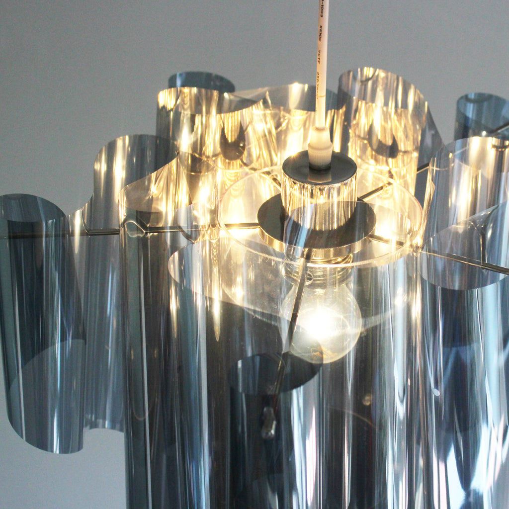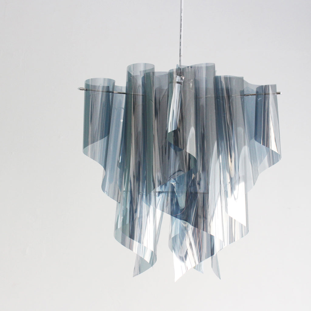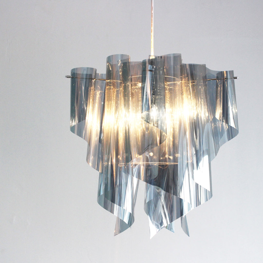 ハーフミラーシェードのドレープに光が乱反射して、幻想的な輝きを放ちます。1灯でもオブジェの様な華やかさがありますが、多灯づかいすることで、アート作品のような迫力のオーロラが現れます。