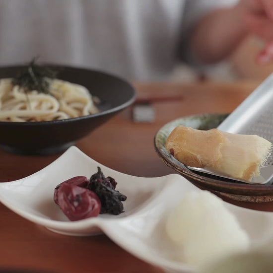 そのままテーブルに出せる、洗練された角型フォルムのおろし金。