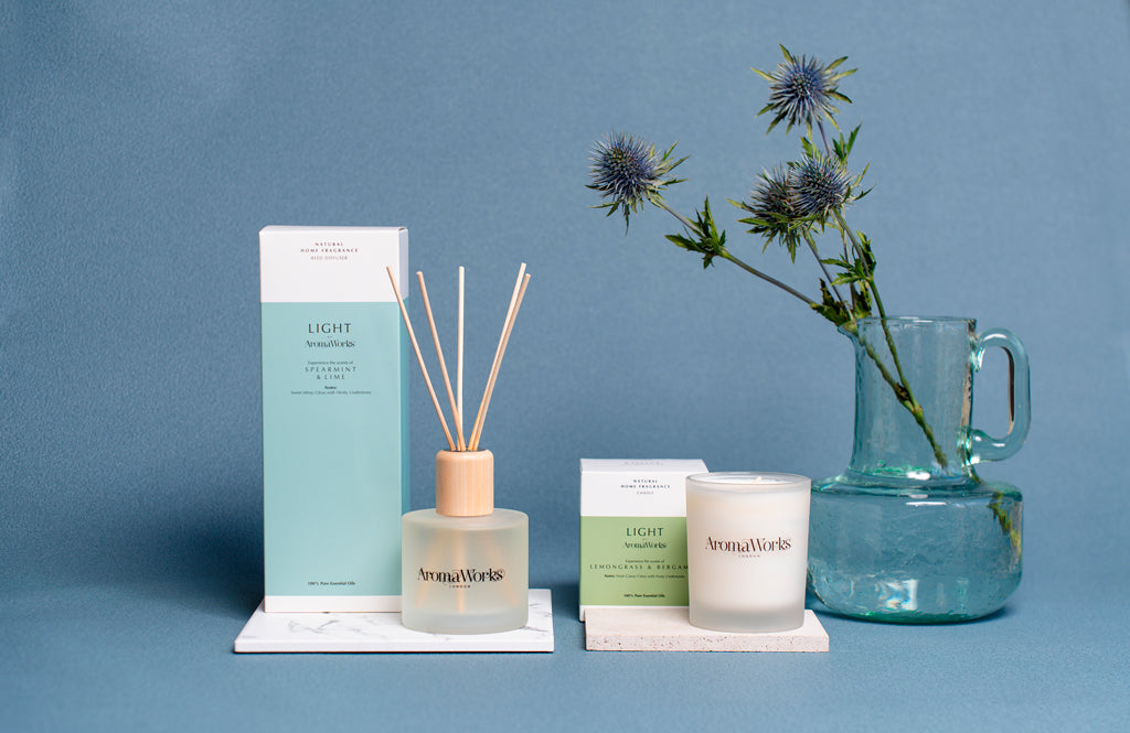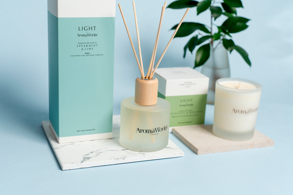アロマワークスは、高品質な100%ピュアエッセンシャルオイルにこだわり、化学物質は一切使用せず、環境に優しい素材を使用して、丁寧に作られたこれまでにないクリアでフレッシュな香りを楽しめるホームフレグランスブランドです。