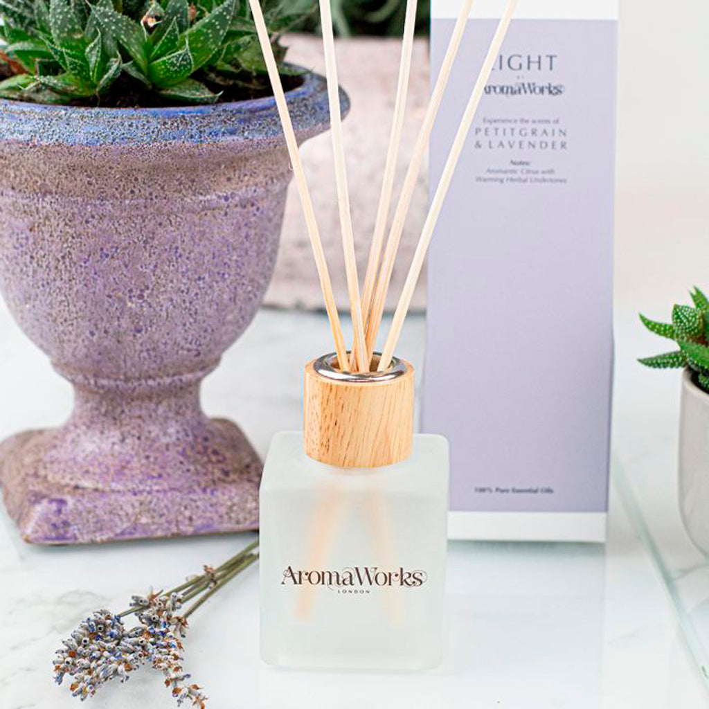 アロマワークスは、100%ピュアエッセンシャルオイルにこだわり、クリアでフレッシュな香りを楽しめるホームフレグランスブランドです。