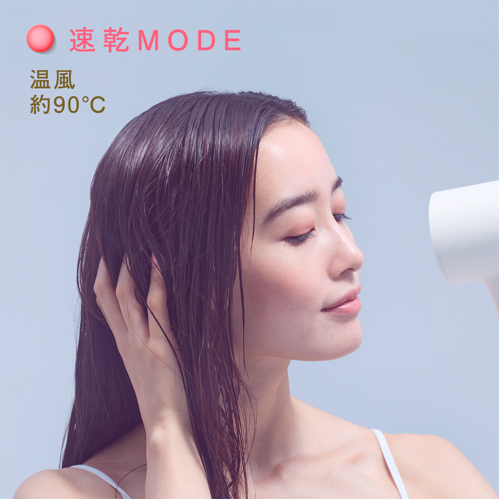 約90℃の温風。濡れた髪をすばやく乾かしたいときに |