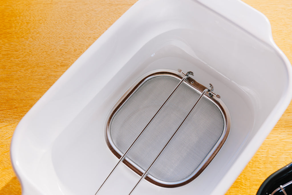 こちらの揚げ物鍋には、専用のフライヤーネットがついているので、揚げ物を安定して取り出すことができます。