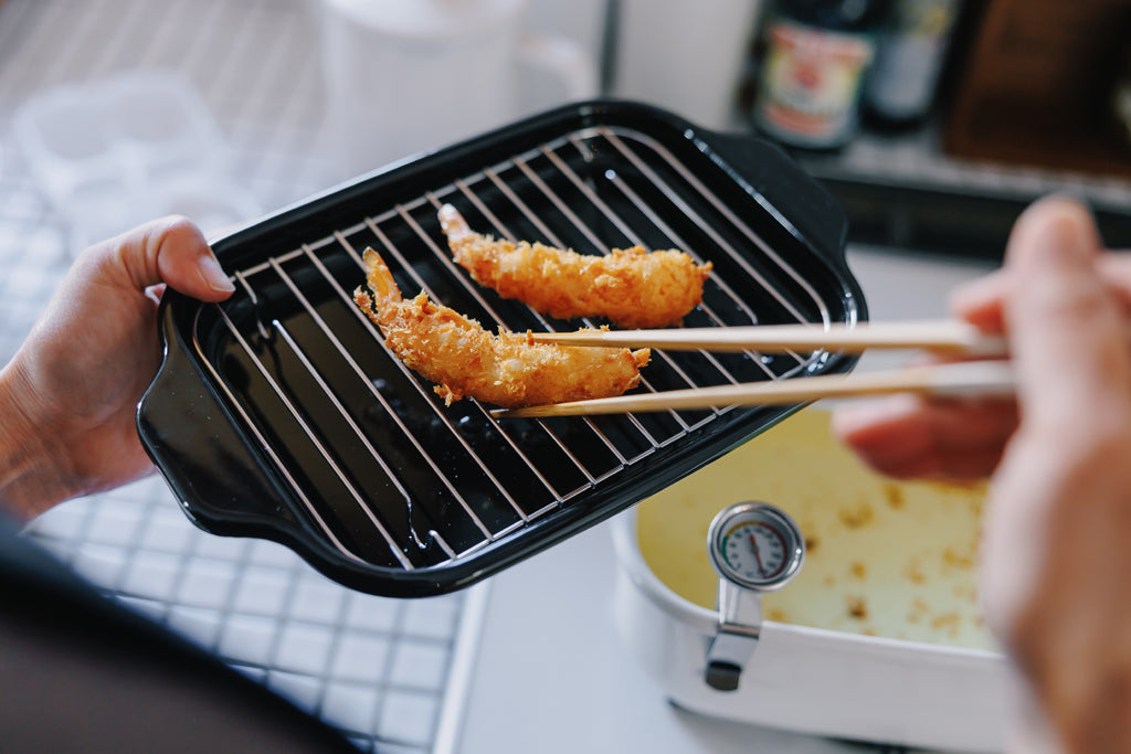 お子さまの喜ぶえびフライや唐揚げ、ポテトフライなどを、おいしい揚げたてを食べてほしくて、ご自宅で揚げることも多いのではないでしょうか。