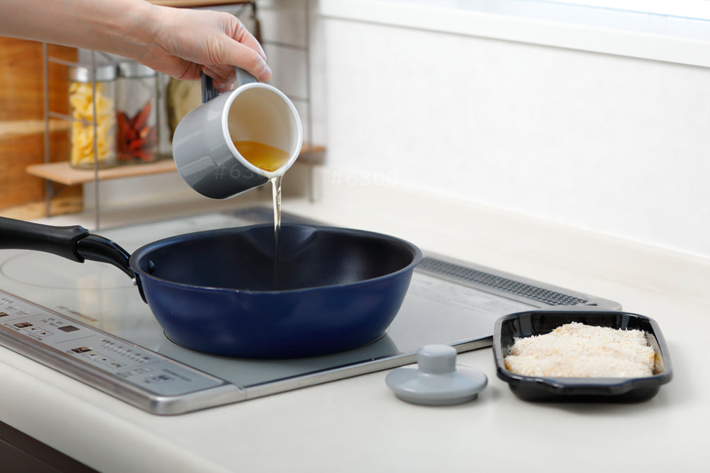 広めの経口と注ぎ口により、ストレスなくフライパンに油を入れることができます。