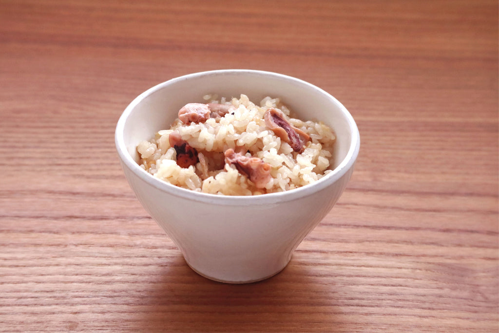 だしの旨味とたこの食感、香りのアクセントとして千切り生姜を合わせた、旨味と香りを楽しめる炊き込みご飯の素です。