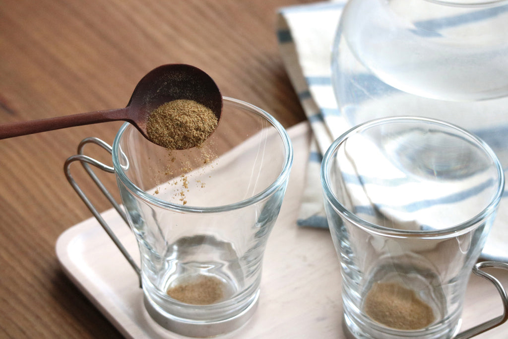 健康なからだづくりのために、スプーン1杯の天然だし粉で作る”飲むおだし”がおすすめ。