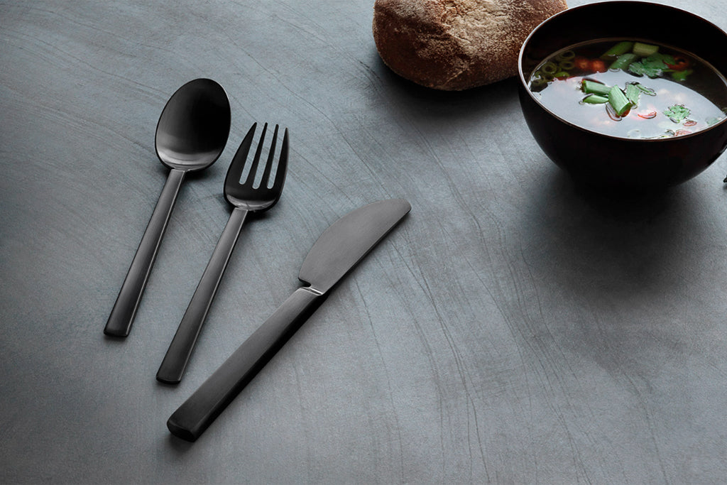 ステンレスカトラリーを、クラシックな「ツヤ消し」で仕上げたシリーズです。