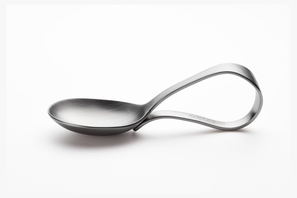 人が生まれて初めて口にするベビースプーンは持ち手を丸めて持ちやすく、口に入れても安心な弊社自慢の一品です。