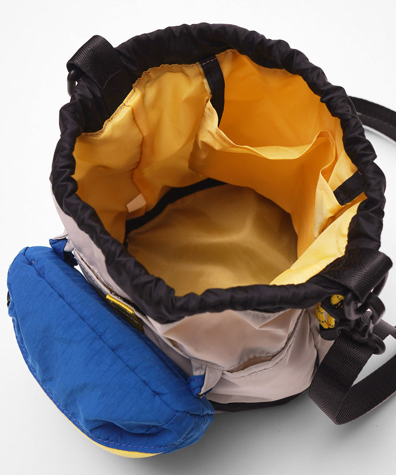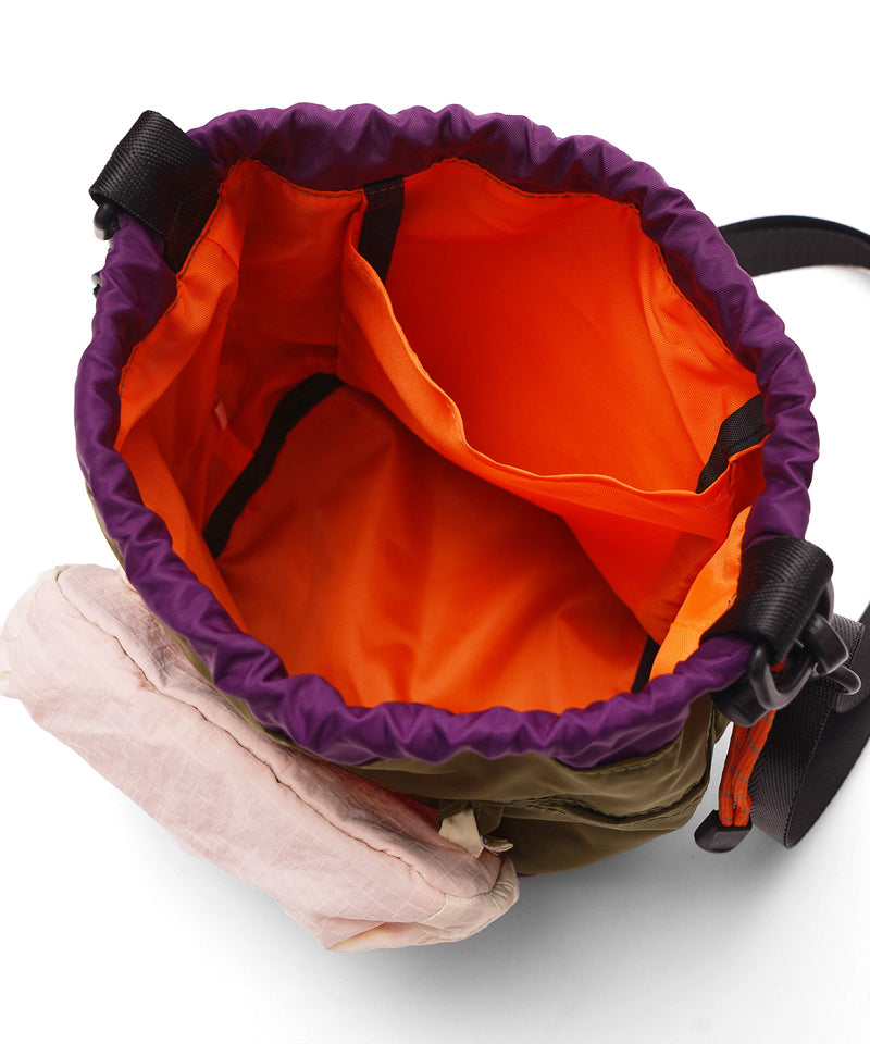 巾着タイプのバッグで、ショルダーを外してもパラコードの部分でハンドバッグとしてもご使用いただけます。