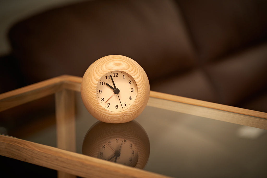コロコロした丸い枠には、枠のヴォリュームに合わせて、存在感のある数字を並べています。天然木ならではの温かみが、時を包み、心を和ませてくれることでしょう。