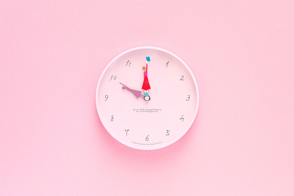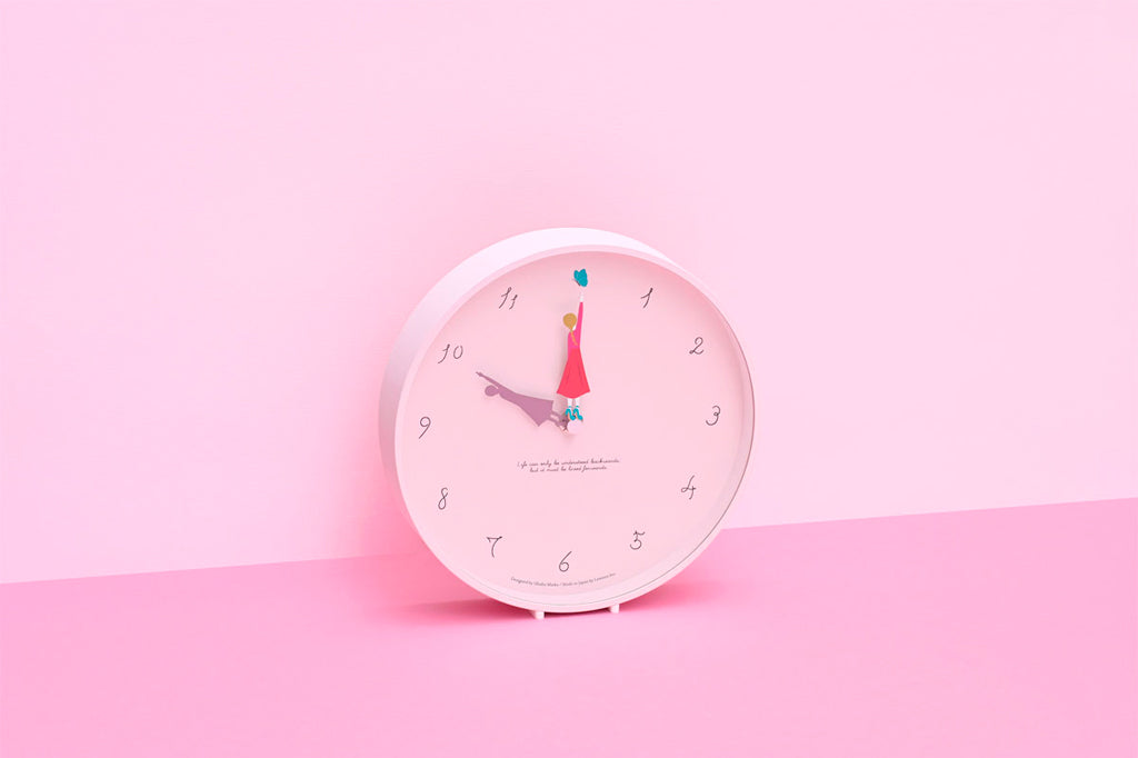 この製品名になぞらえ、一時間に一度、女の子が「夢」に近づくというストーリーのある時計に作りあげました。
