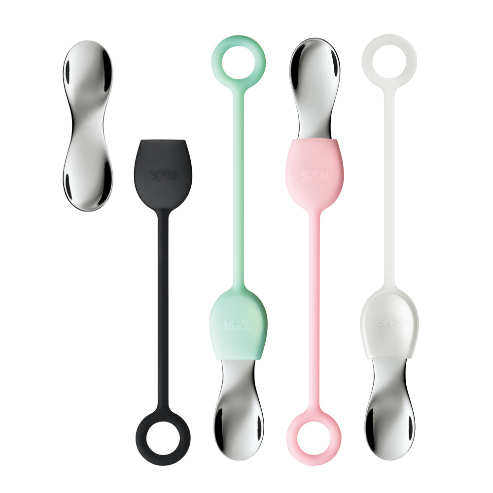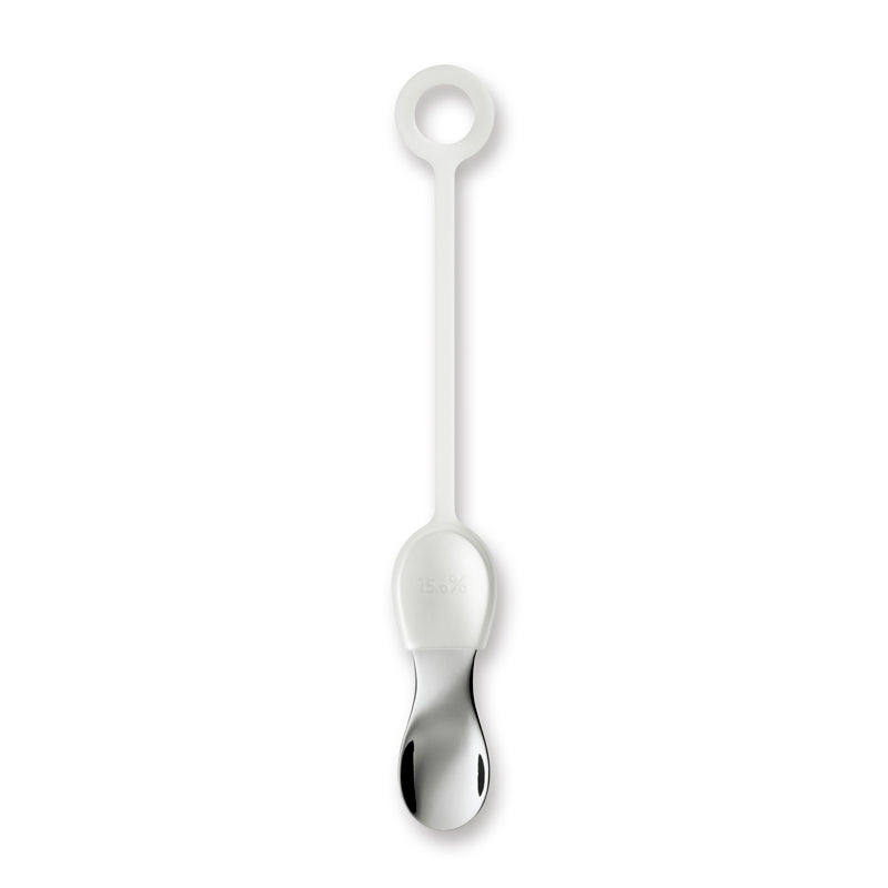 アルミ無垢の小型スプーンに、携帯に便利なシリコーン製のストラップが付属。