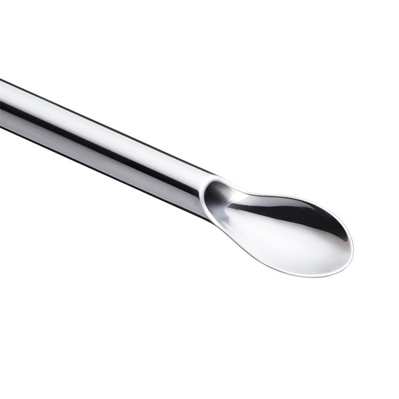 15.0%アイスクリームストローは、スプーンとストローが一体のアルミニウム素材で、ストローをくわえた唇にひんやりソーダの冷たさが伝わるクリームソーダ専用ストローです。