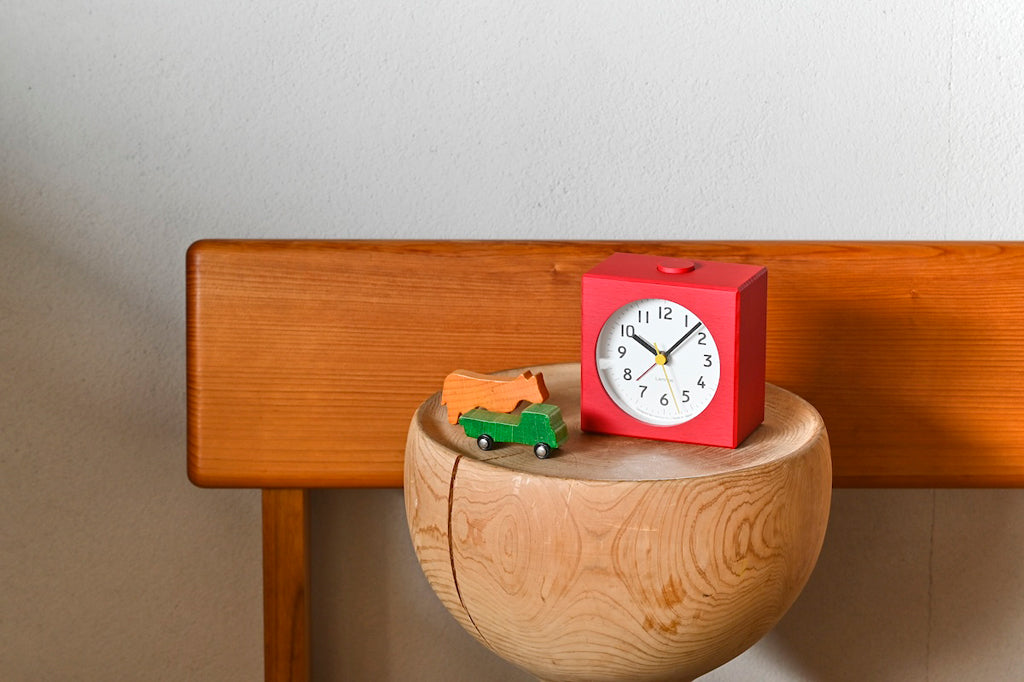 積み木のように角が面取りされた、使い手に優しい形のアラーム時計です。