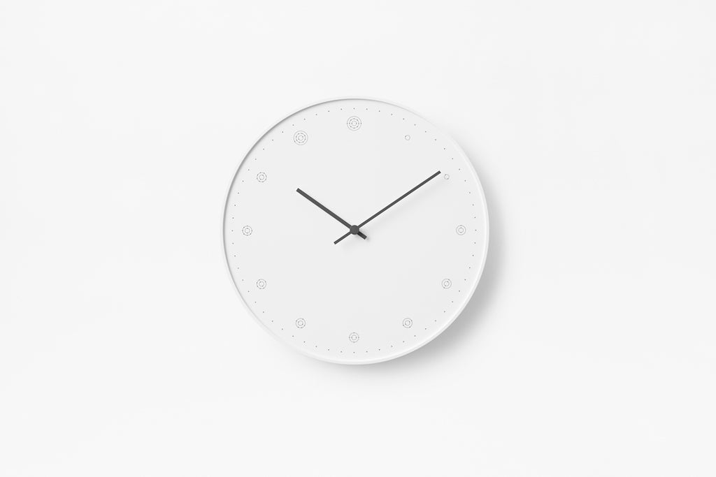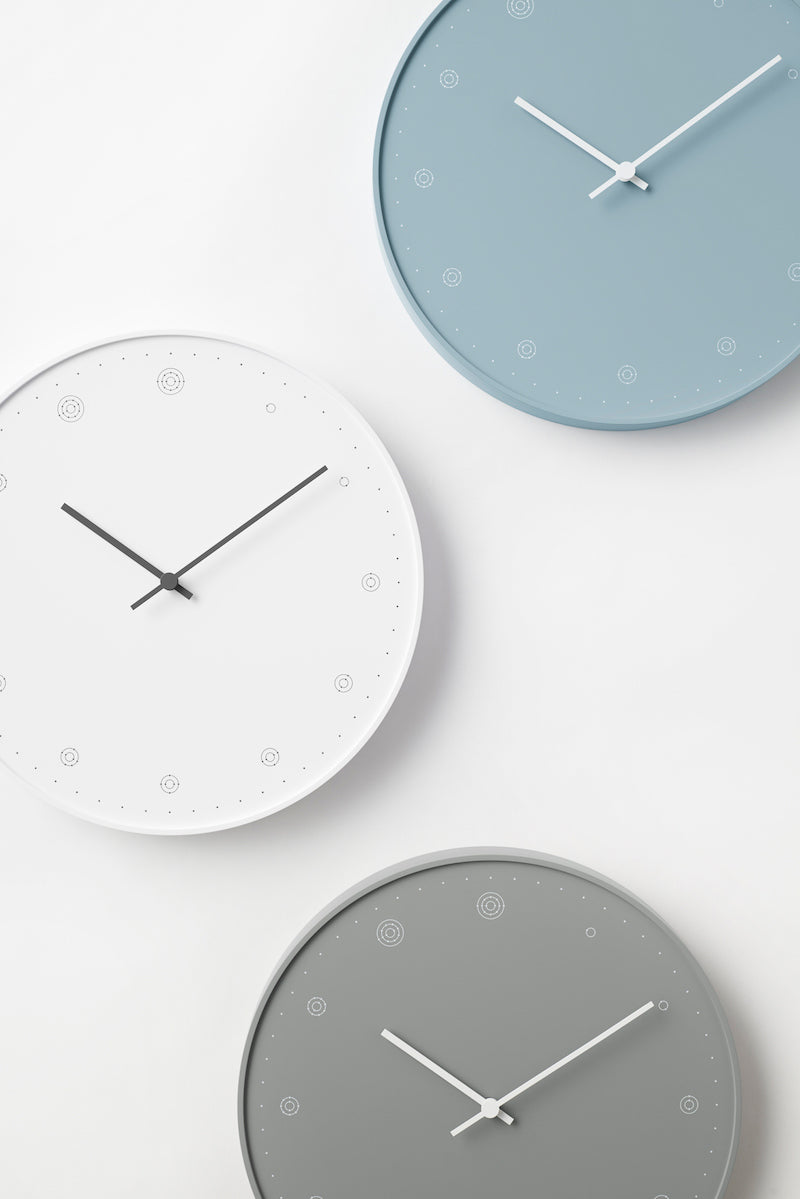 数字によってではなく、異なる尺度を用いた壁掛け時計のシリーズ。