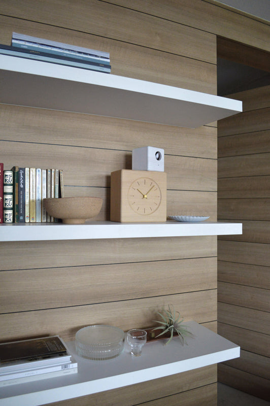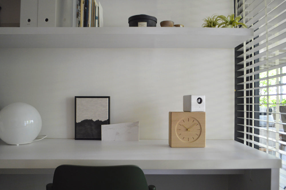 デスクや本棚に最適な驚きのある時計のデザインとなりました。