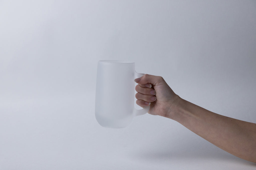 注がれた飲料や氷が綺麗に映えるように、つるんと丸みのある表面、ゴツゴツの少ない素直な形状としました。