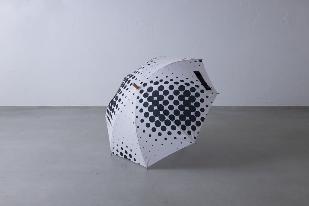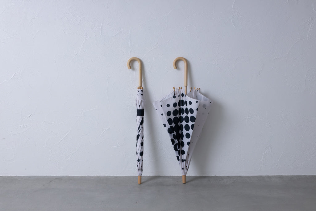 近目では分かりませんが、遠くから眺めると実は「Fu と fu」の文字が見えてきます。大胆な遊び心が仕込まれた楽しい傘です。