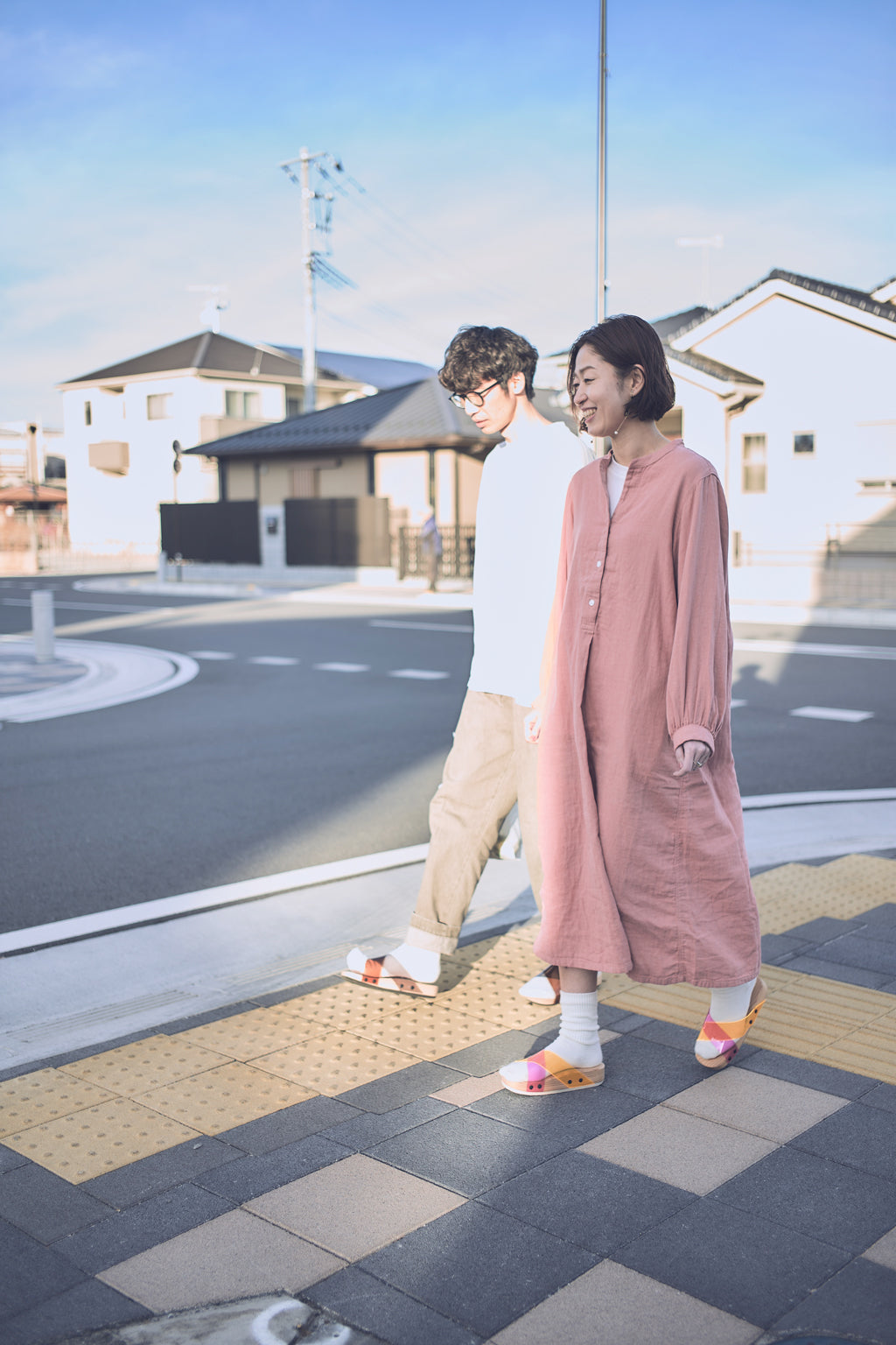お揃いのつっかけで、ちょっとそこまでお散歩に。