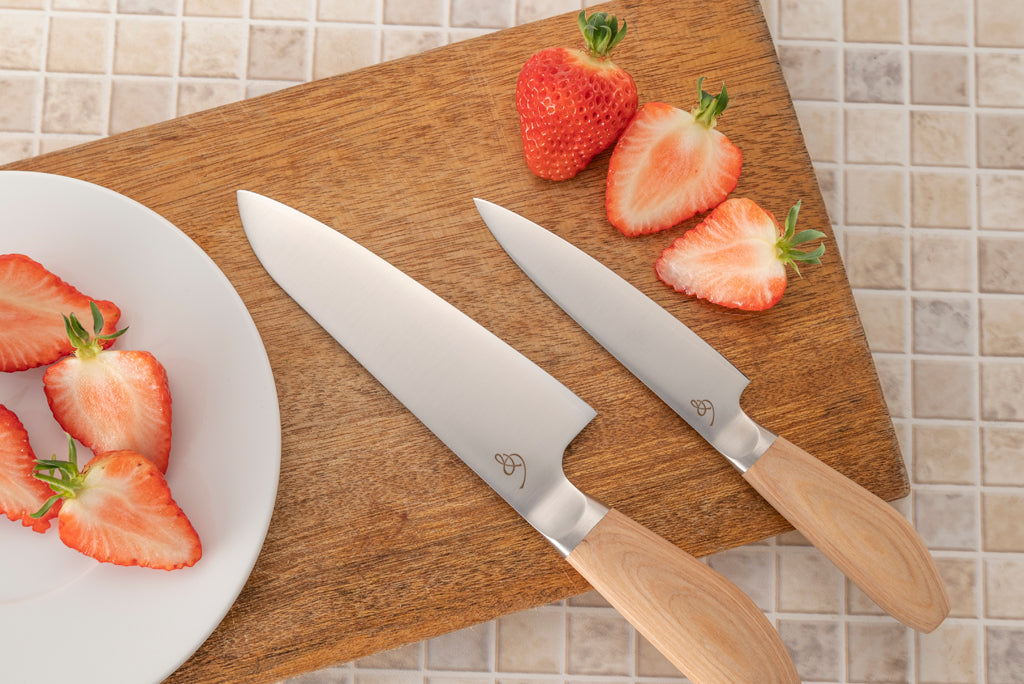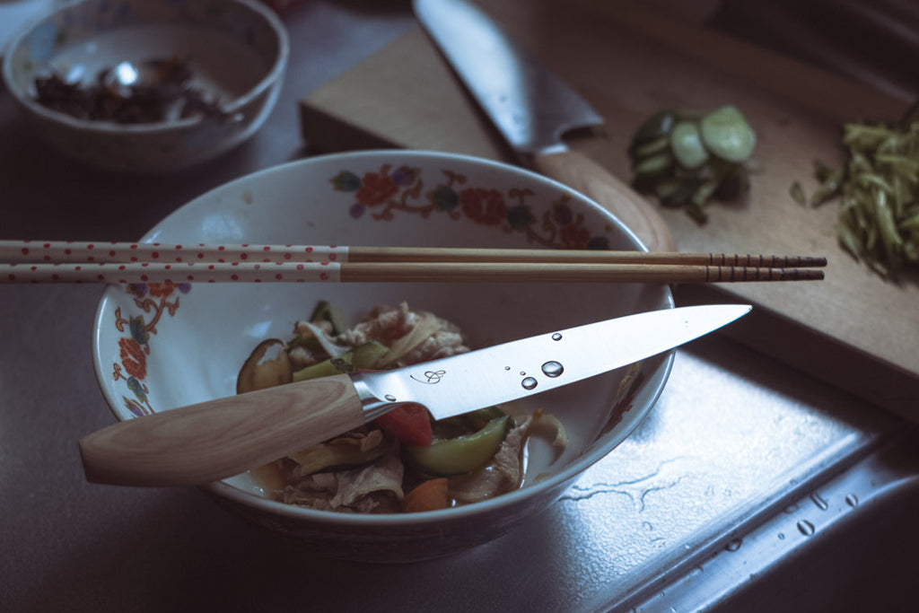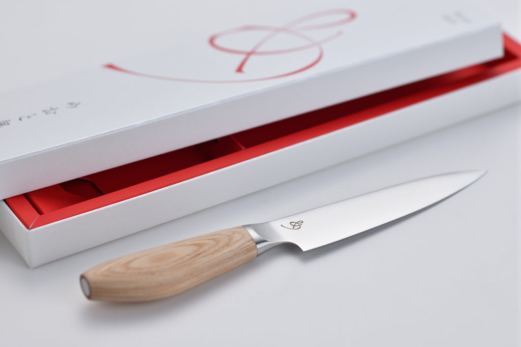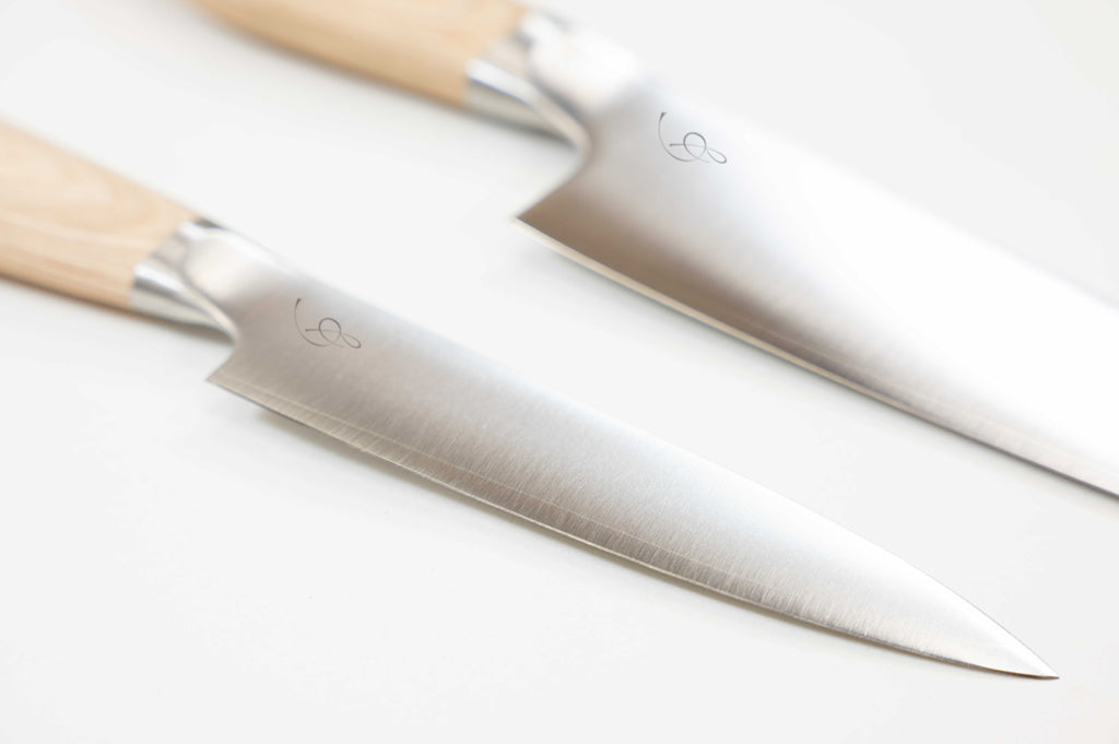 ブレード一体型の鋲なしハンドルが特徴のペティナイフです。