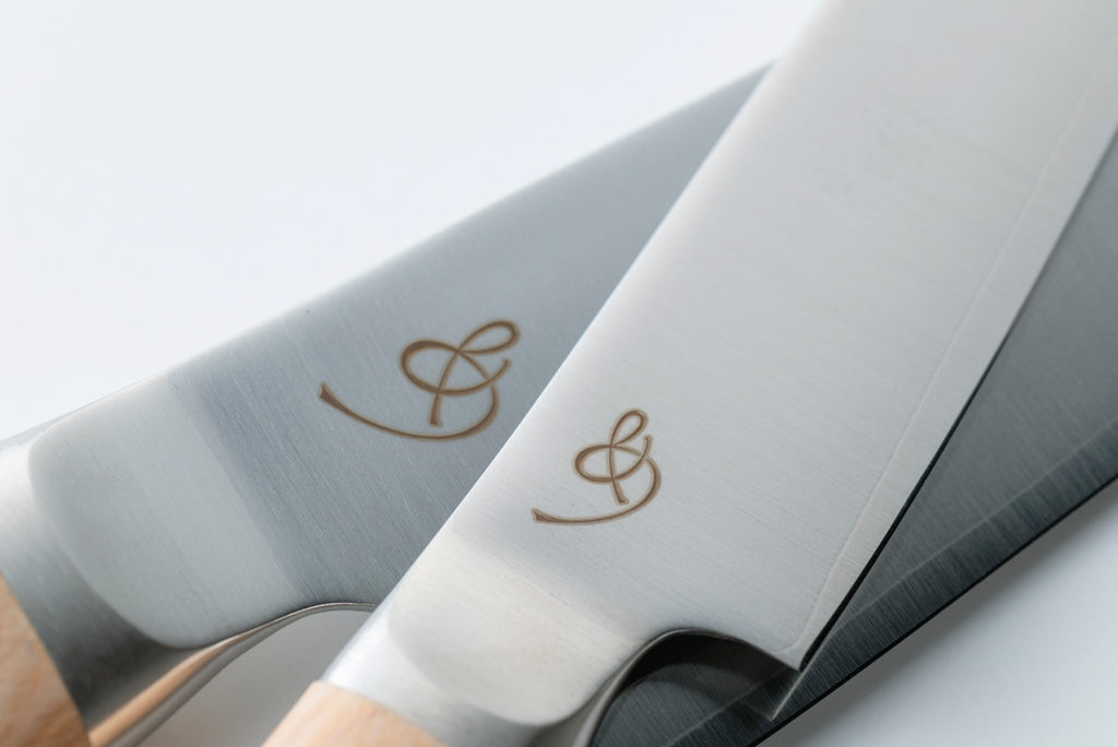 刃は切れ味が落ちにくく、錆びにくい、モリブデンバナジウム鋼を芯材にした、ステンレス三層鋼を使用しました。岐阜県関市にて製造しています。