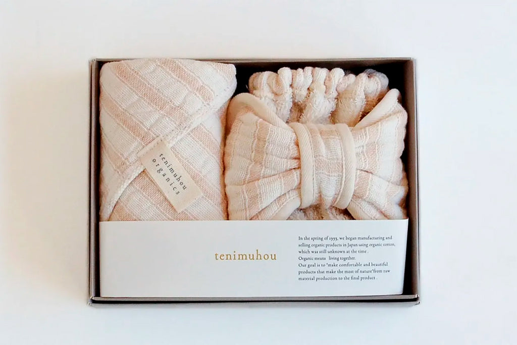 バスタイムが楽しみになるスラブガーゼのヘアバンドとウォッシュタオルのギフトセットです。