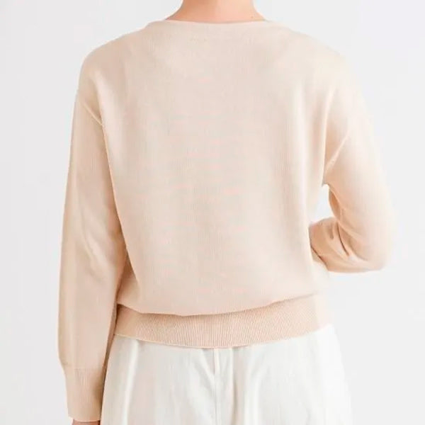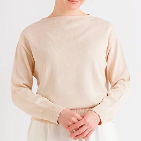 鎖骨まわりをきれいに見せてくれるボードネックは体型を選びにくく、取り入れやすい形です。